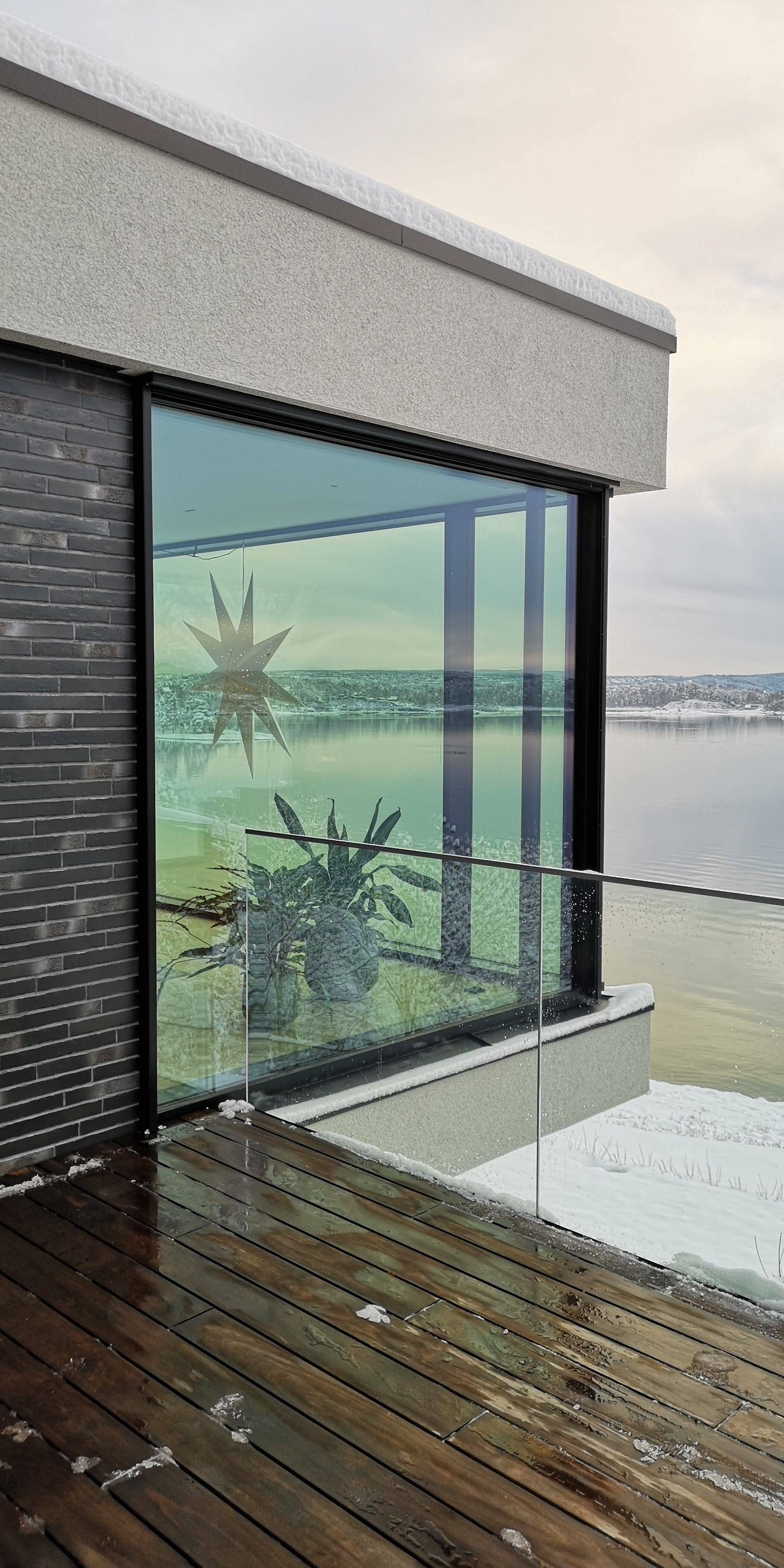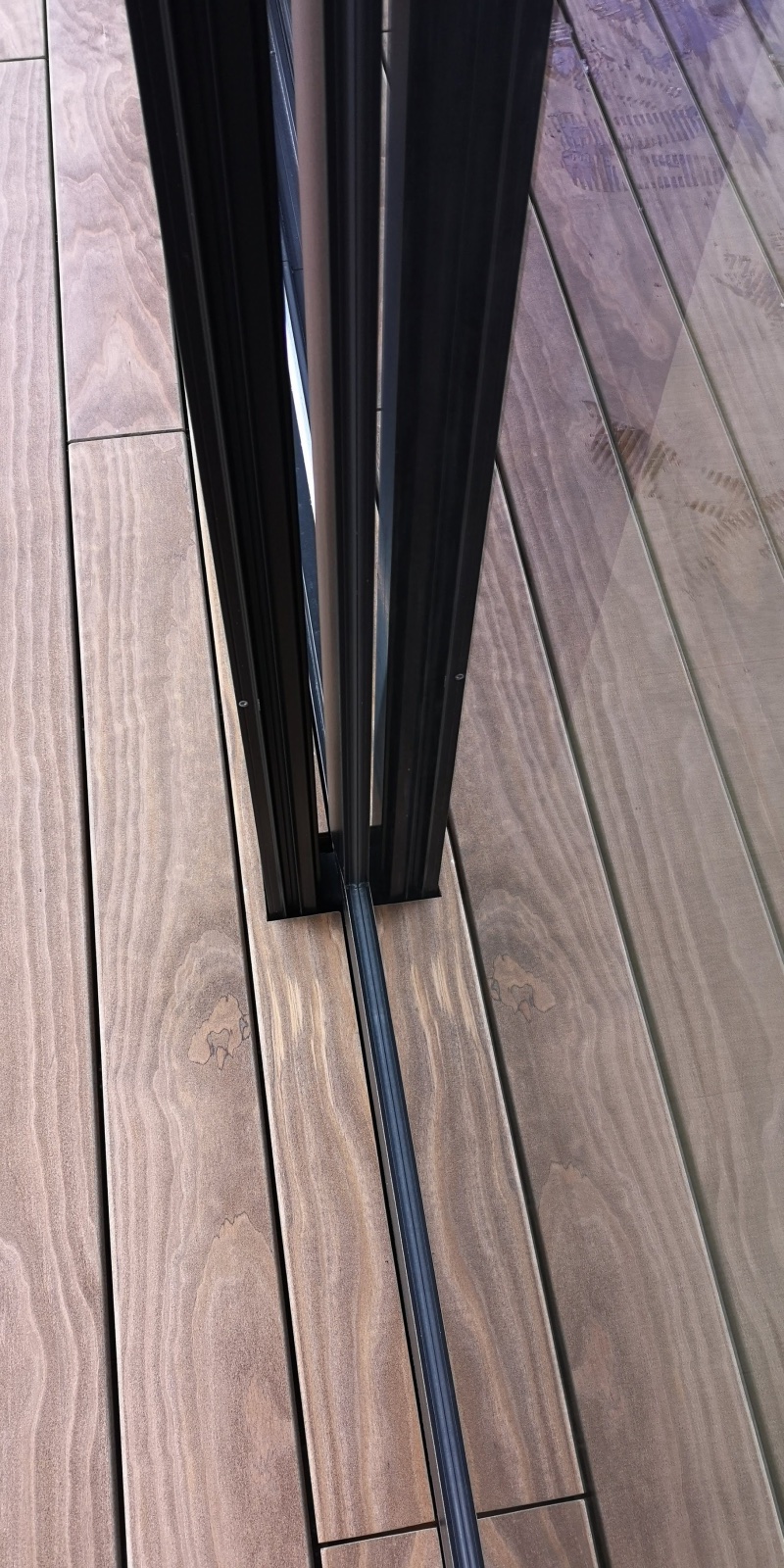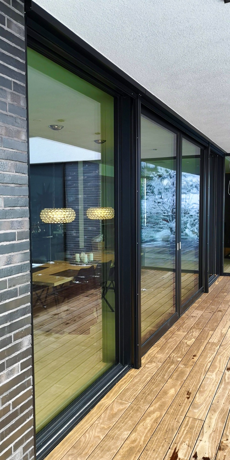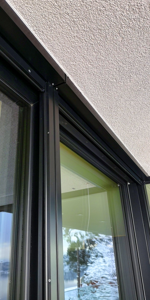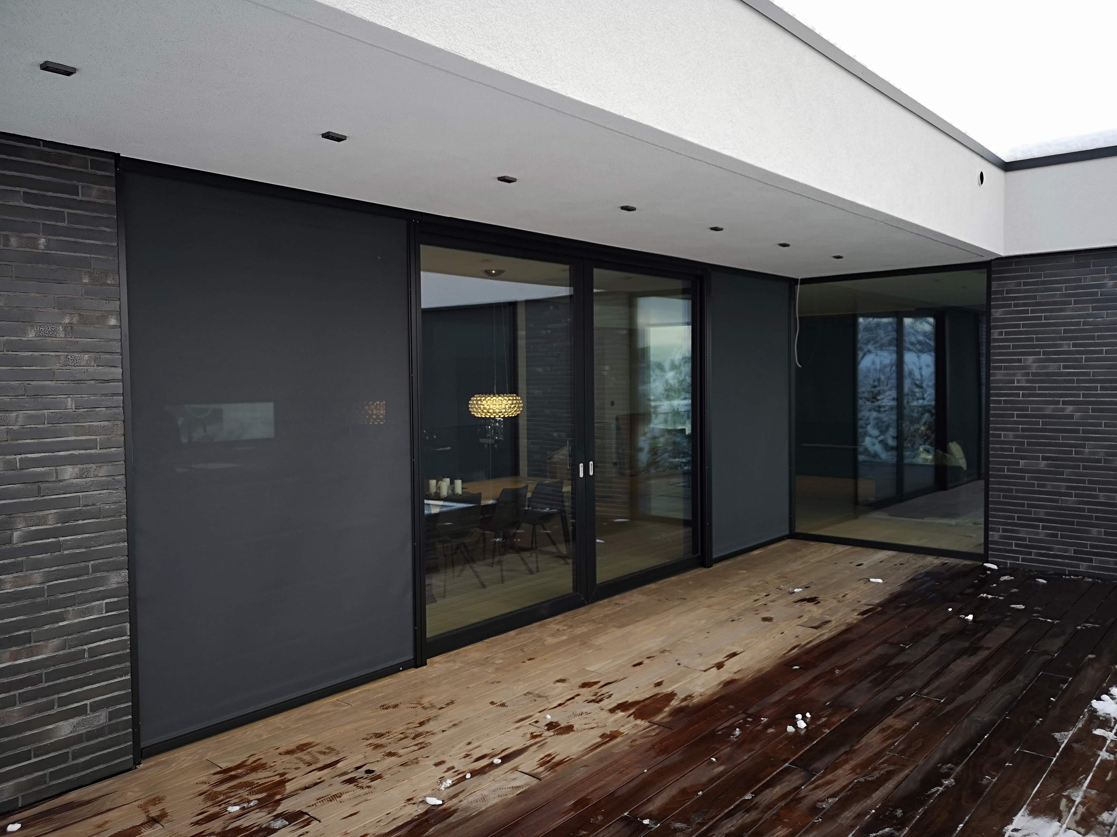 Renson Fixscreen IM7 i RAL9005 med Somfy IO motorer og Serge 600 Charcoal | Charcoal screenduk